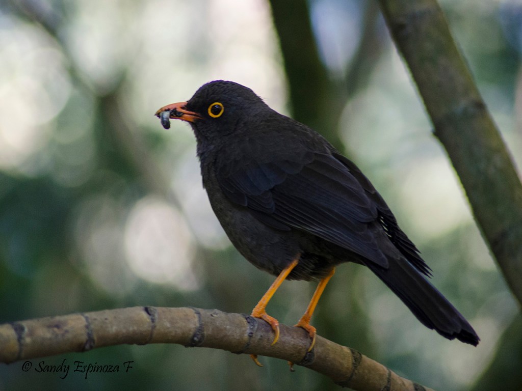 Soy uno de los más comunes en los parques y jardines de la ciudad, grande y muy audaz, bullanguero y buen cantor, he aprendido a imitar los cantos de otras aves así que debes prestar mucha atención cuando me escuches cantar. Soy grande y de color negro, el macho tiene un anillo ocular de color naranja, para poder diferenciarnos fíjate en nuestro ojo. Me alimento de semillas, frutos e insectos.