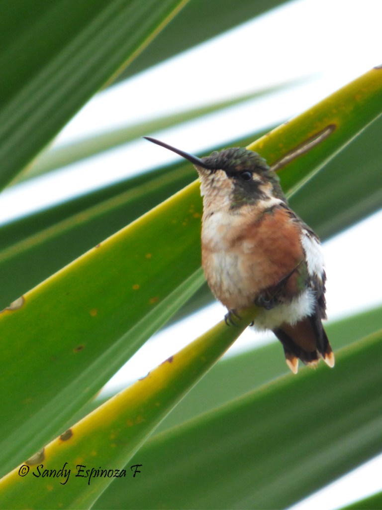 Soy el colibrí más pequeño, debes prestar mucha atención para verme, cuando estoy cerca al batir mis alas escucharás un sonido como el de un pequeño motor, me gusta el néctar de las flores de Farol Chino y de las Fuchsias, también visito alimentaderos artificiales.